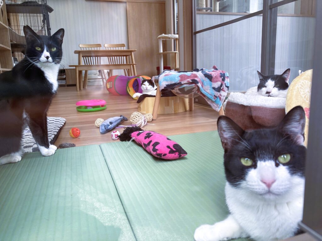 堺市動物指導センター内の、猫さん譲渡施設でくつろいでいる里親さん募集中の猫さんたちです。職員さんたちも、とても親切で環境も良さそうなので、リラックスしてお昼寝中の猫くんが多いです。