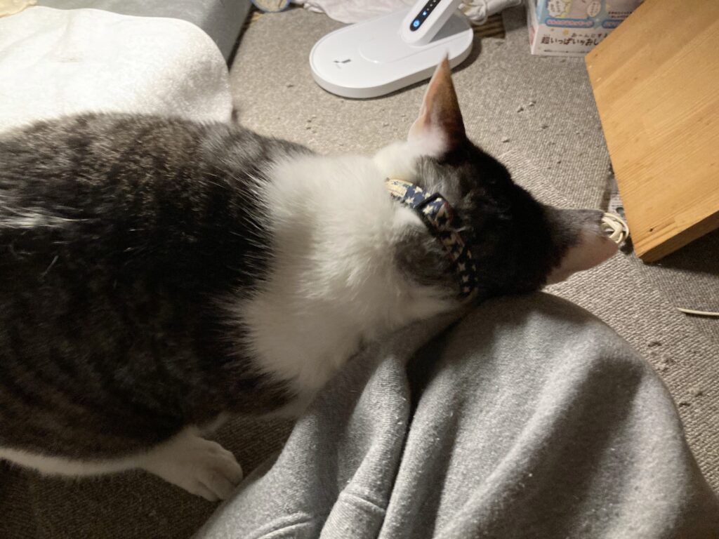 お腹が空いたと、くっついてきます。純粋でかわいいですよ。猫君には私もモテモテです!