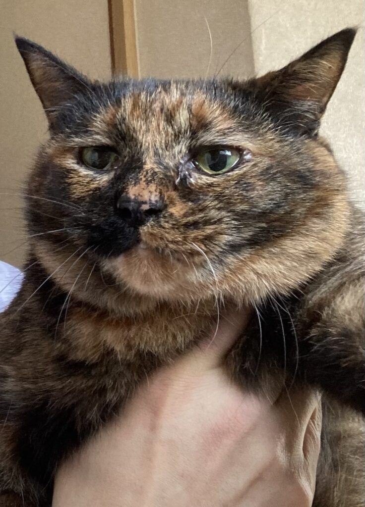 目の不自由な猫君、チビ太君。一番高齢で11歳ぐらいでしょうか、天真爛漫で元気いっぱい。食欲旺盛です。やさしい猫思いの子です。
